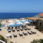 De strandfaciliteiten van Messina Resort Kyparissia bevatten zonnestoelen en parasols.